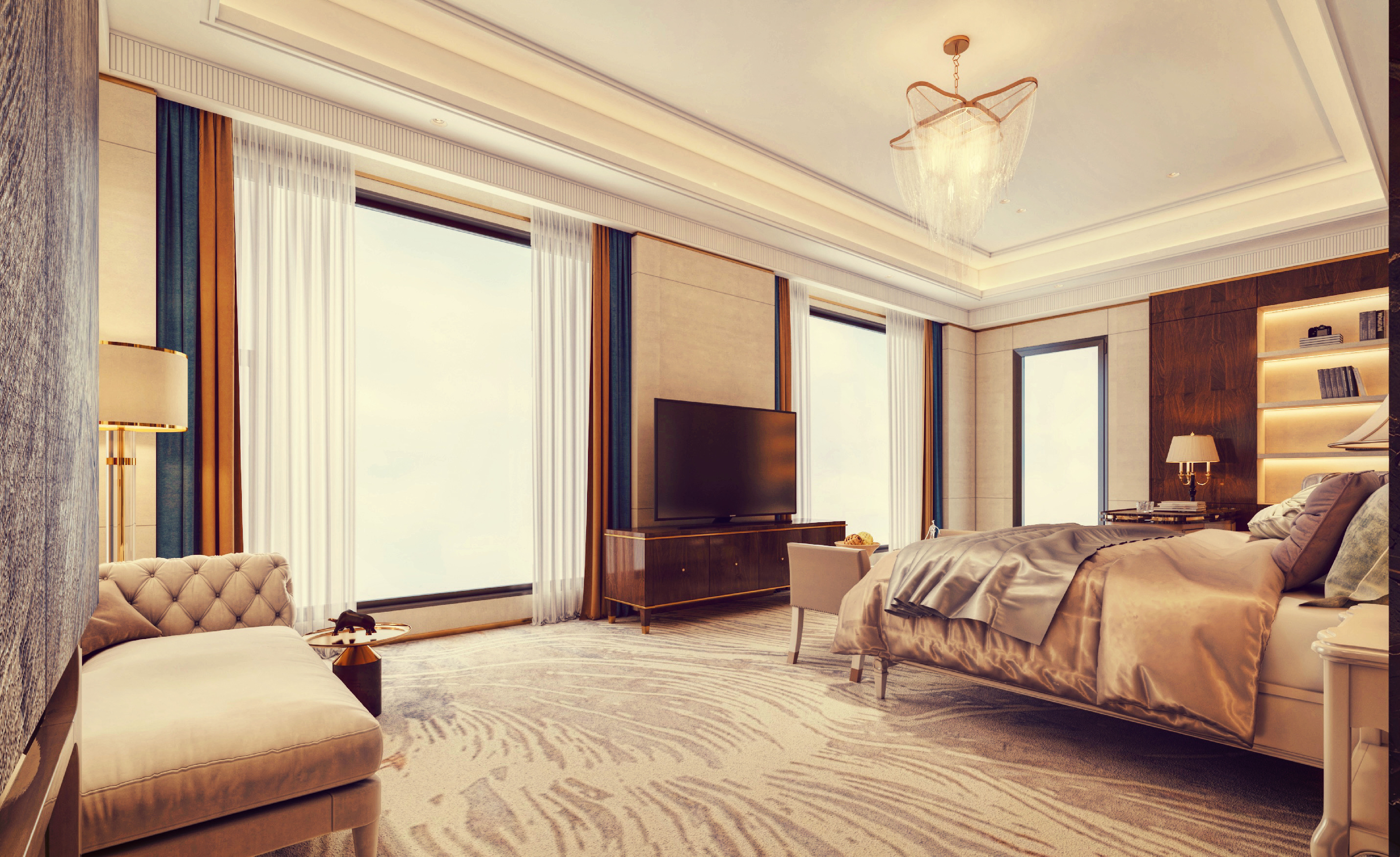 總統套房CEO會客廳-2臥室-1客廳-3衞生間-浴缸